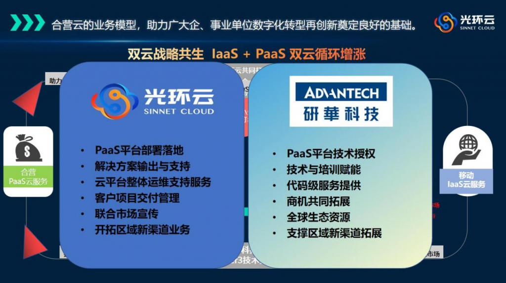 研华科技工业互联网事业群总监 李景恩先生表示:“研华科技与光环云共同建设合营云的业务模型,为助力企业数字化转型再创新奠定良好的基础。 李景恩先生表示:“企业在持续扩大的过程中,都会遇到设备/生产的数字化建设和资源投入,从过去IT/OT层在ERP、FIN、BPM或机械手臂等的投入,发展到现在对于AI、大数据、5G以及资产管理等的投入演进,都预示着数字化转型这个话题逐渐成为企业发展的重要战略方向,也让智能制造的话题更上一个台阶。面对当今的行业发展趋势,作为数字化转型服务提供商,不仅需要具备传统合作伙伴的设备、产品提供能力,也需要具备通过建设稳固的基础设施(IaaS),提供平台(PaaS)建设、交付、运营以及运维服务,更好的服务于企业的数字化转型战略!”