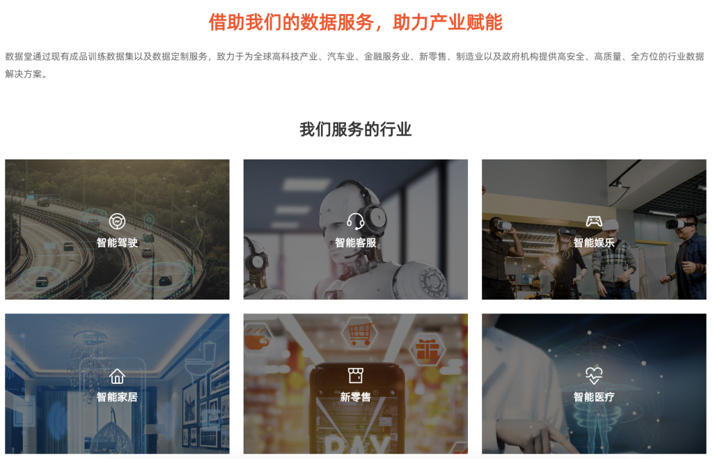(数据堂现有成品训练数据集涵盖语音识别数据20万小时,计算机视觉数据800TB,自然语言理解数据20亿条)