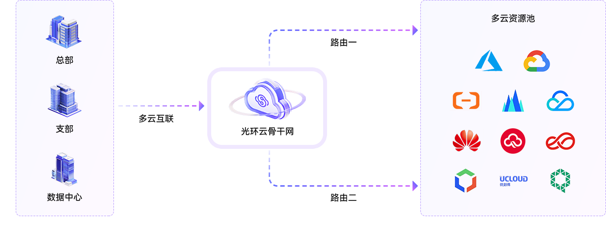 用户可以通过多云互联产品将用户侧的网络、数据中心主机托管区专线专网连接至云上VPC,享受高性能、低延迟、安全专用的数据网络。