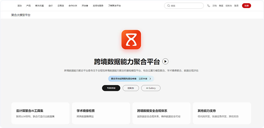 在数据合规性自评估平台的安全审计下,通过云计算技术,实现海外大模型、海外AI算力、海外学术镜像等能力的统一化聚合,以赋能海外资源的境内合规化运营。