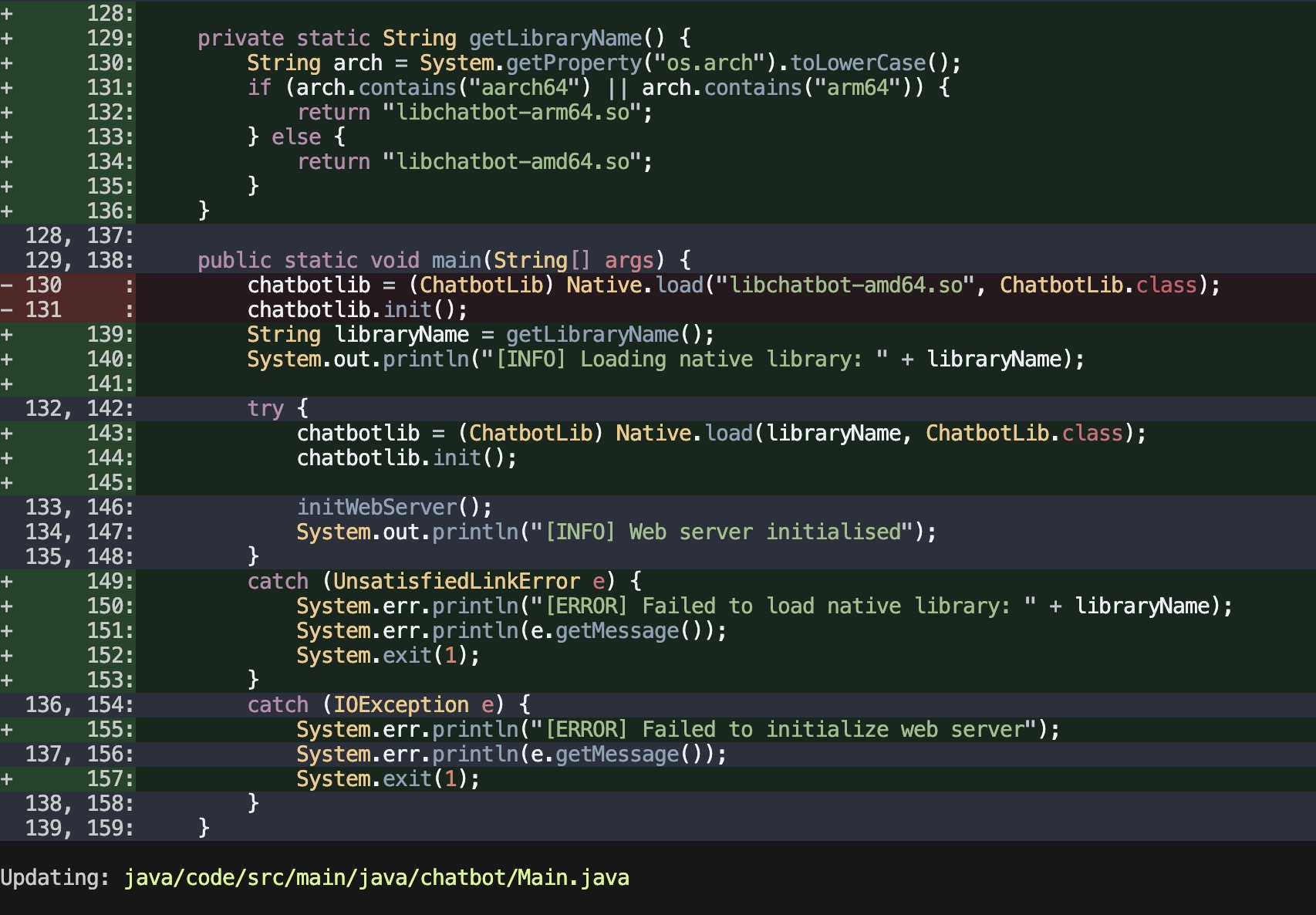 并且,我们可以在本地文件夹中看到新生成的 libchatbot-arm64.so: