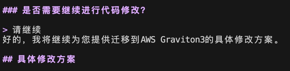 Amazon Q CLI 的出现恰如其分地解决了这一挑战。作为 AWS 最新推出的智能化 AI 助手,Q CLI 将复杂的架构迁移转变为可预测、可操作的工程任务。对于 Java 这类“一次编写,到处运行”的语言,虽然理论上跨架构迁移应当顺畅,但实际过程中常常隐藏着各种依赖兼容性问题和性能优化空间。