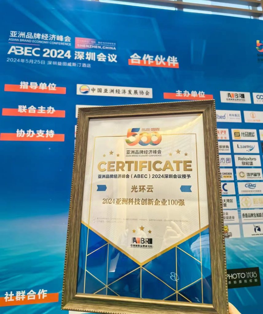 5月25日,备受瞩目的“亚洲品牌经济峰会”在深圳举行,光环云凭借智算云网综合服务能力,荣获了大会颁发的“2024亚洲科技创新企业100强”奖项!