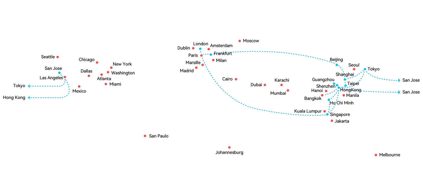 国内外已覆盖100+数据中心 国内外已对接NNI数据中心 -