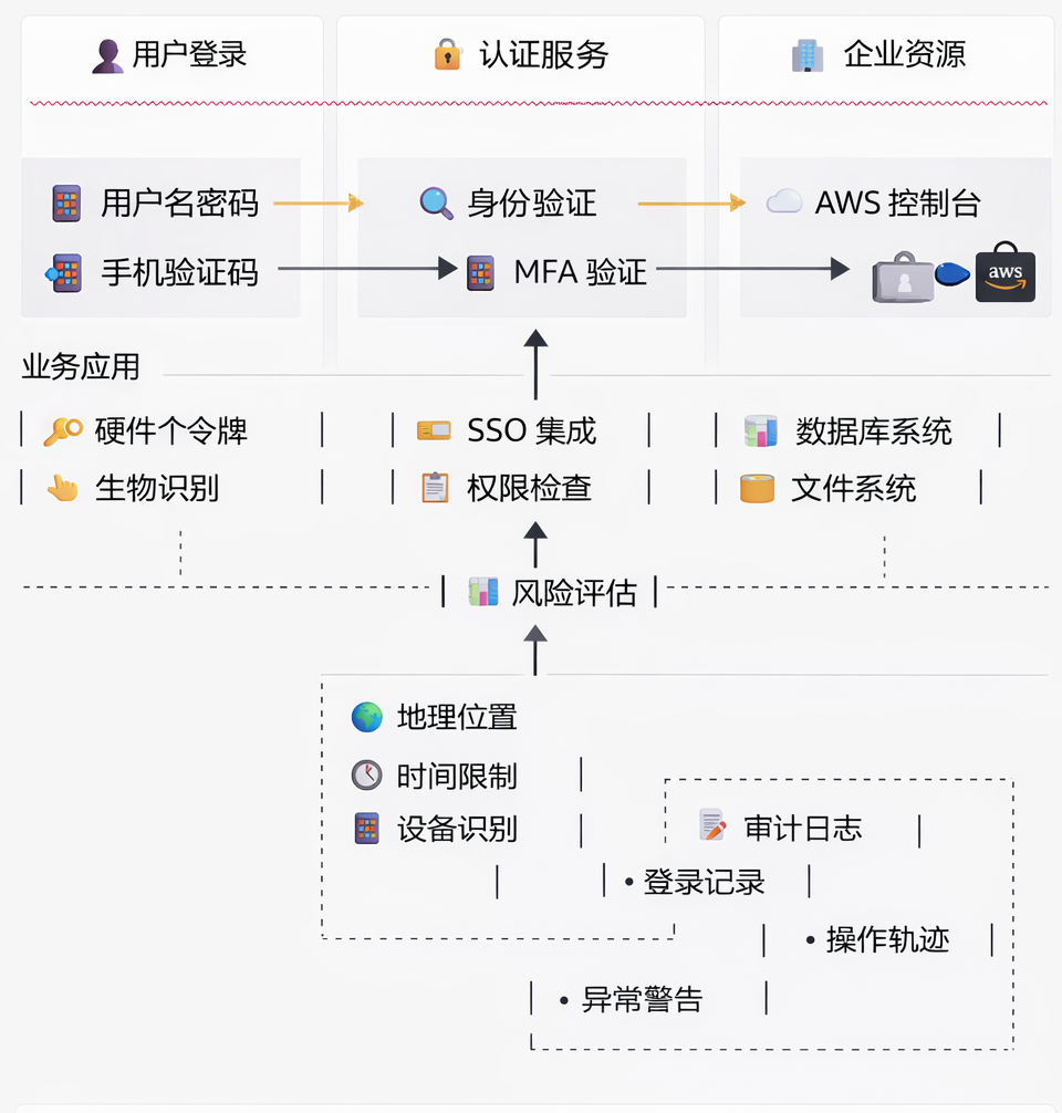 AWS Identity and Access Management (IAM) 是AWS安全体系的核心,提供了细粒度的权限控制能力。通过IAM,企业可以精确控制谁可以访问哪些资源,在什么条件下可以执行什么操作。